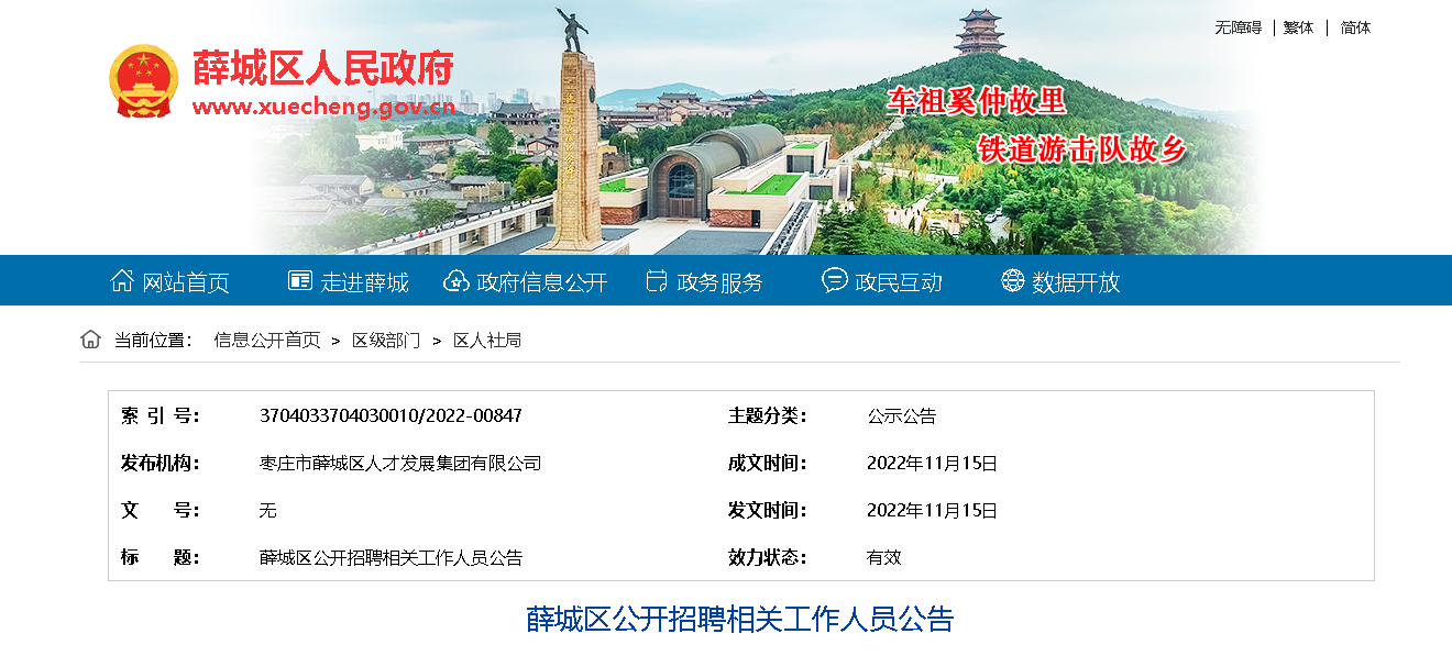 2、本招聘公告最終解釋權(quán)歸棗莊市薛城區(qū)人才發(fā)展集團(tuán)有限公司所有。
