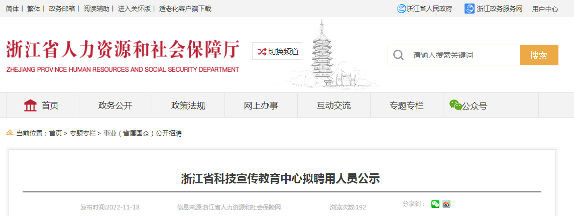 2022年浙江省科技宣傳教育中心擬聘用人員公示已發(fā)布。報(bào)名時(shí)間:2022年11月18日至2022年11月28日?,F(xiàn)將公告原文發(fā)布如下: