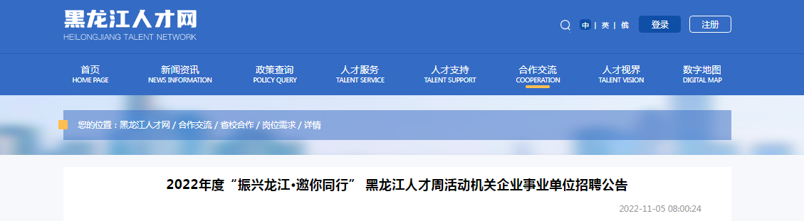 原文標(biāo)題:2022年度“振興龍江·邀你同行” 黑龍江人才周活動(dòng)機(jī)關(guān)企業(yè)事業(yè)單位招聘公告