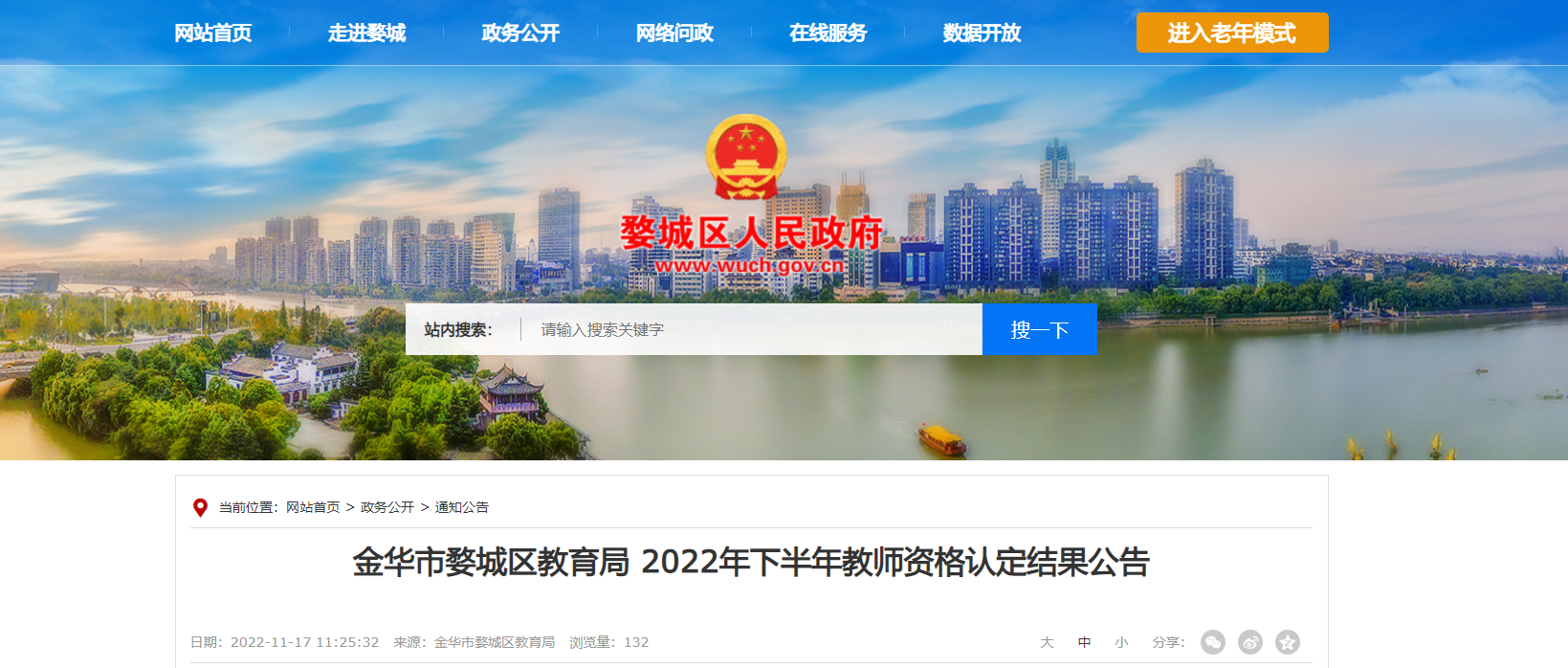 原文標(biāo)題:金華市婺城區(qū)教育局 2022年下半年教師資格認定結(jié)果公告