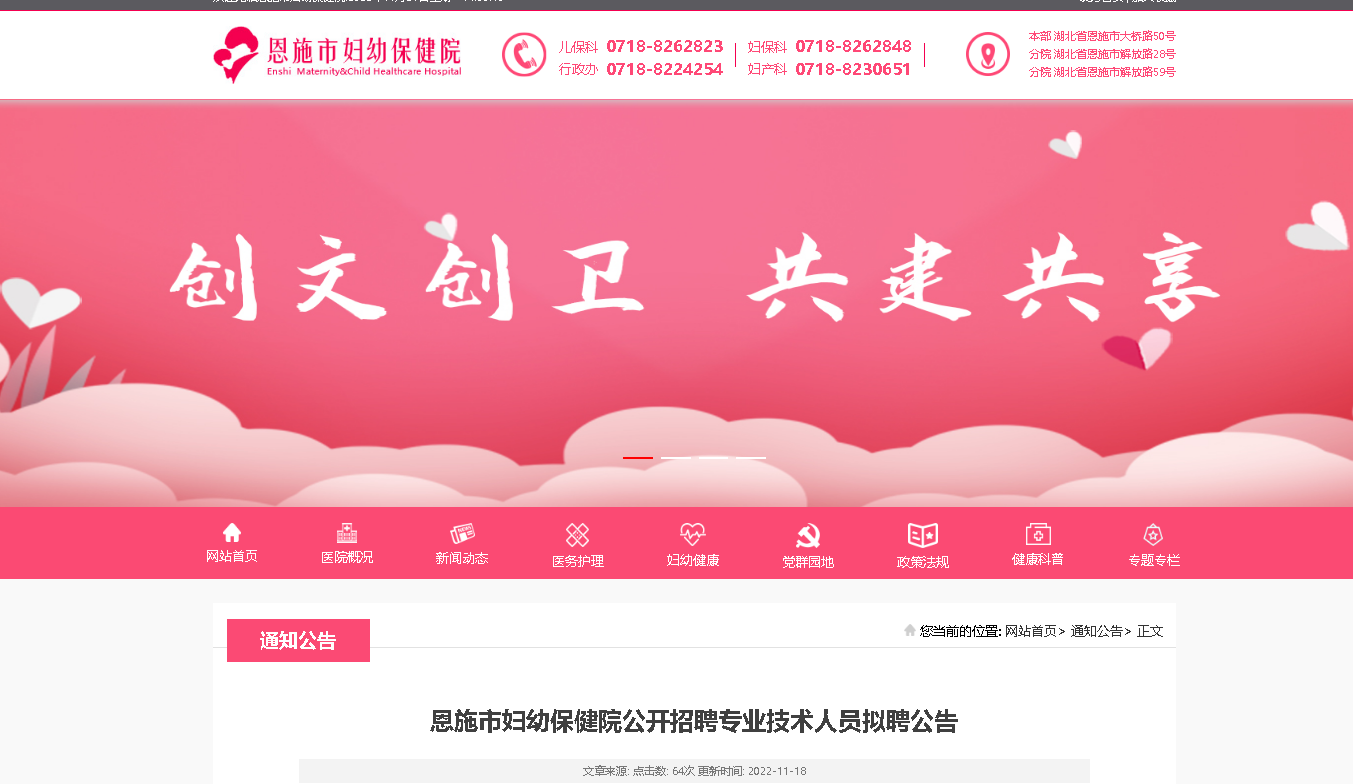 根據(jù)《恩施市婦幼保健院公開招聘專業(yè)技術(shù)人員公告》要求,現(xiàn)將擬聘人員名單公告如下:(附件)