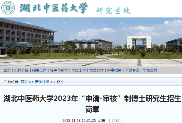 原文標題:湖北中醫(yī)藥大學2023年“申請-審核”制博士研究生招生簡章