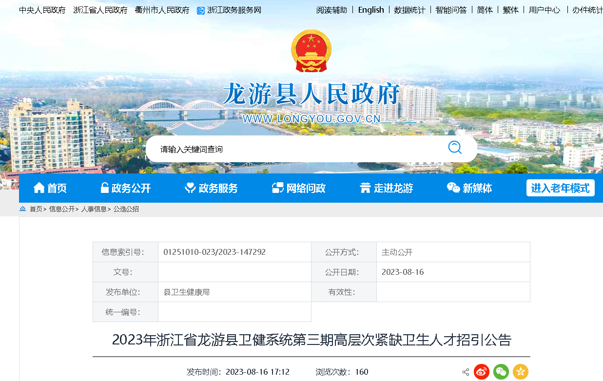 經(jīng)體檢、考察合格的擬聘用人員,在龍游縣人力資源和社會(huì)保障局網(wǎng)和龍游縣人民政府信息公開(kāi)網(wǎng)縣衛(wèi)健局公示5個(gè)工作日。