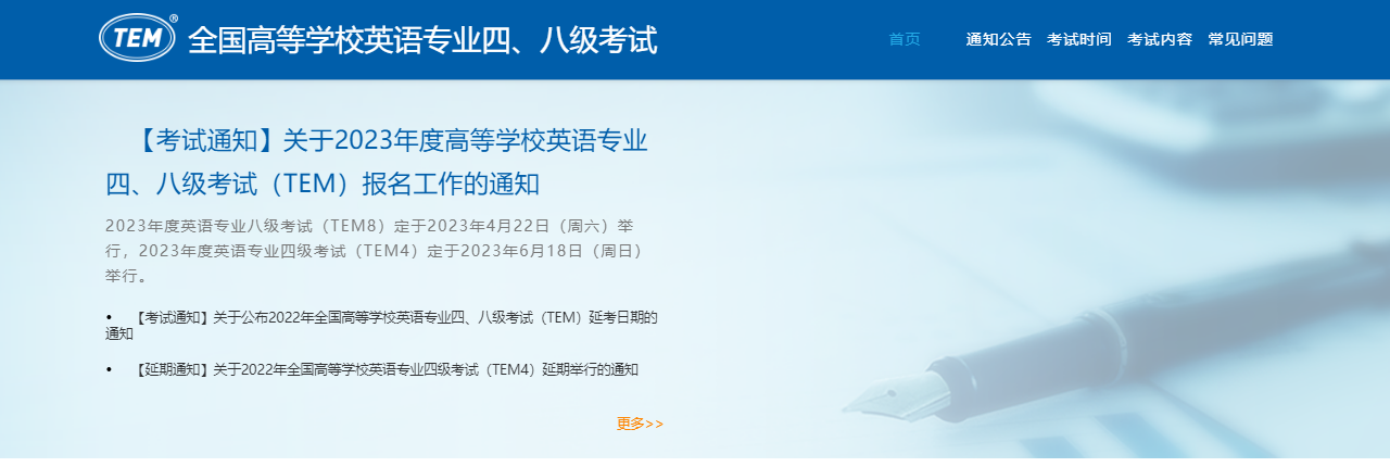 TEM兩個(gè)科目的考試每年各開(kāi)考一次,其中TEM4的考試時(shí)間一般為每年六月底前,TEM8的考試時(shí)間一般為每年四月底前,每次考試具體時(shí)間以考試前下發(fā)的正式文件為準(zhǔn)。