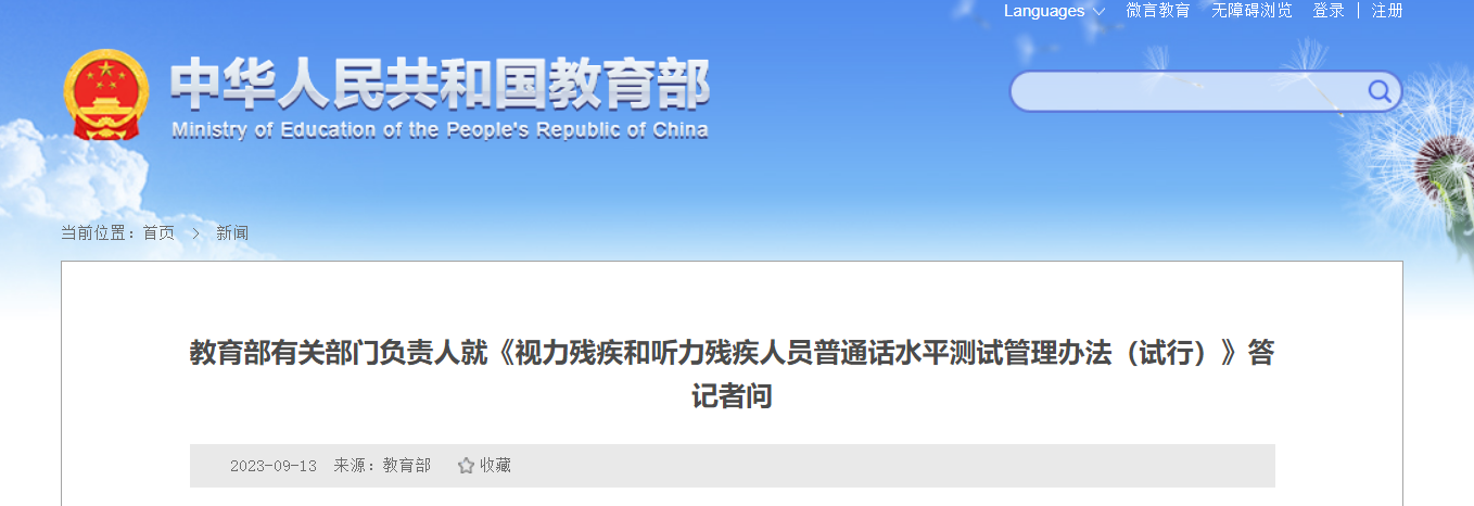 從教育部獲悉,2023年視力殘疾和聽力殘疾人員普通話水平測試管理辦法的問答已公布,具體詳情如下: