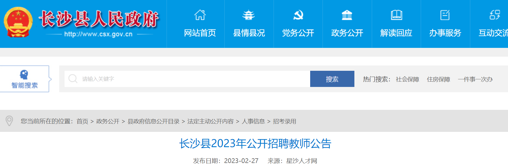 2023年2月27日在長沙星沙人才網(wǎng)、長沙縣教育局和星沙教育公眾號發(fā)布招聘公告。