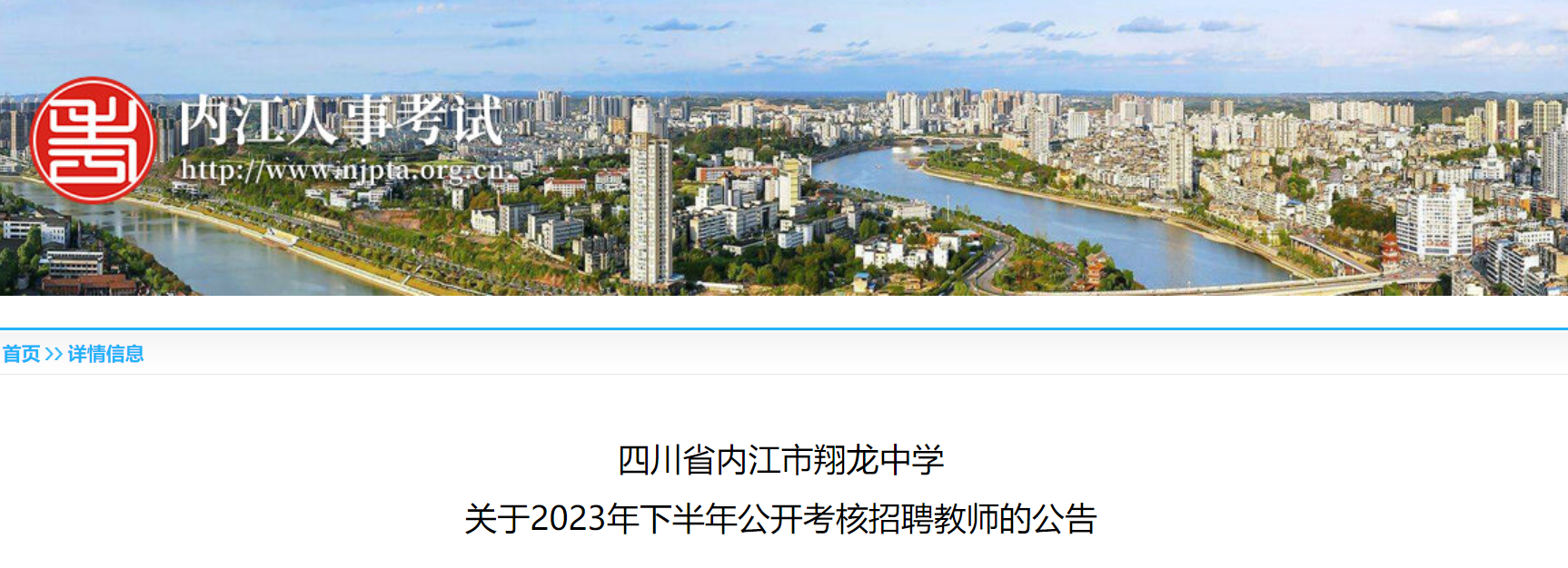 考核招聘過程信息通過內(nèi)江市人事考試網(wǎng)發(fā)布,不再另行通知。請各位考生密切關注考核招聘過程中的相關信息,因個人未及時了解考核招聘信息而造成的后果,責任由本人自負。