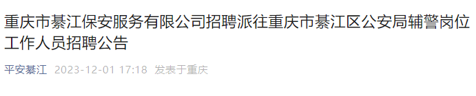 2023年重慶綦江區(qū)公安局招聘輔警報(bào)名時(shí)間在2023年12月1日至12月8日17:00期間!