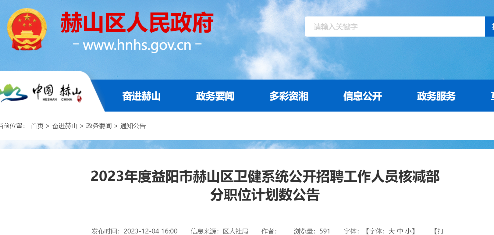 2023年湖南益陽(yáng)赫山區(qū)衛(wèi)健系統(tǒng)招聘核減部分職位計(jì)劃數(shù)公告已發(fā)布,現(xiàn)將公告原文發(fā)布如下: