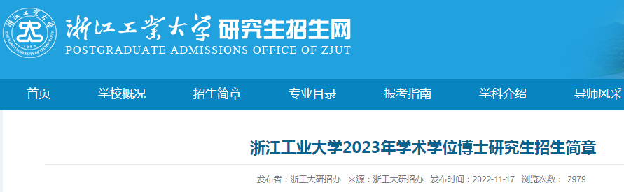 考博頻道從浙江工業(yè)大學(xué)研究生招生網(wǎng)了解到,浙江工業(yè)大學(xué)2023年學(xué)術(shù)學(xué)位博士研究生招生簡章已發(fā)布,詳情如下: