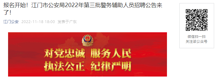 原文標(biāo)題:江門市公安局2022年第三批警務(wù)輔助人員招聘公告