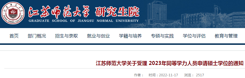 原文標(biāo)題:江蘇師范大學(xué)關(guān)于受理 2023年同等學(xué)力人員申請(qǐng)碩士學(xué)位的通知