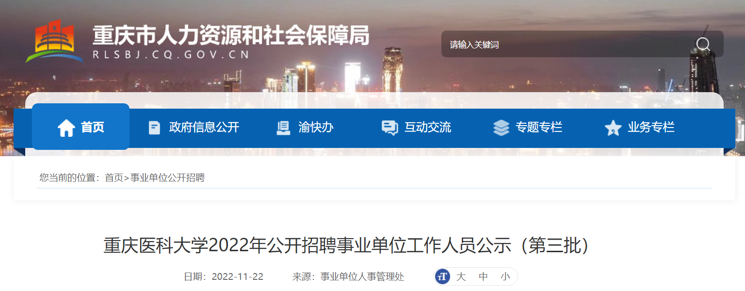 2022年重慶醫(yī)科大學(xué)公開招聘事業(yè)單位工作人員公示(第三批)已發(fā)布,公示時(shí)間:2022年11月23日—12月1日,現(xiàn)將招聘公告原文發(fā)布如下: