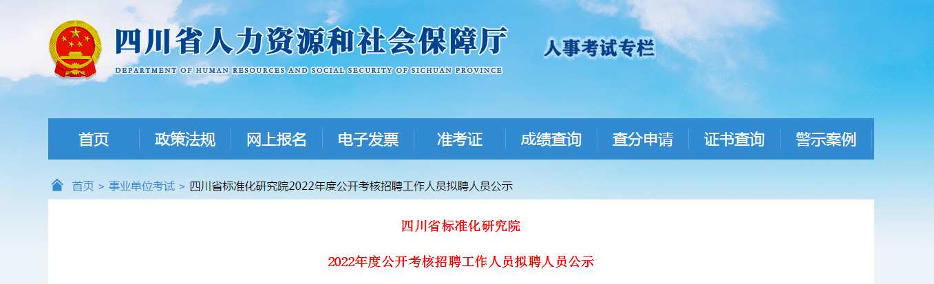 2022年四川省標(biāo)準(zhǔn)化研究院考核招聘工作人員擬聘人員公示已發(fā)布。公示期為7個(gè)工作日:2022年11月23日至12月1日?,F(xiàn)將公告原文發(fā)布如下: