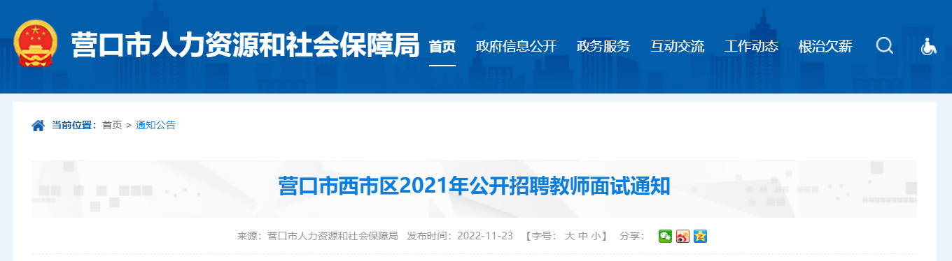 2021年遼寧營口市西市區(qū)公開招聘教師面試通知已發(fā)布,面試時間:12月3日(星期六)9:00開始,現(xiàn)將原文發(fā)布如下:
