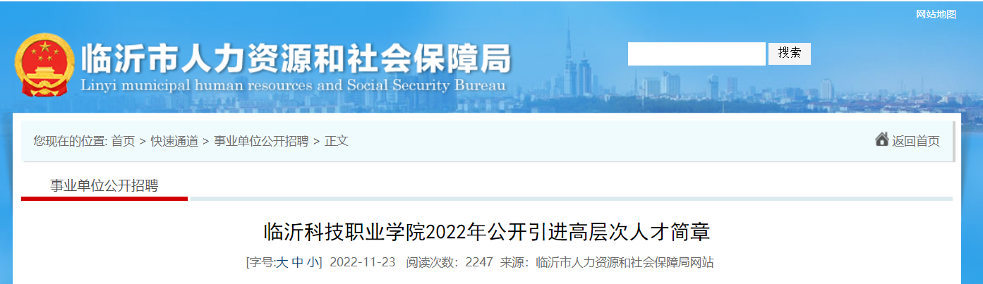 1、臨沂科技職業(yè)學(xué)院2022年公開引進(jìn)高層次人才計劃