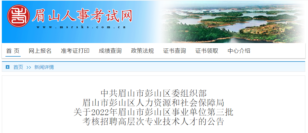 原文標(biāo)題:中共眉山市彭山區(qū)委組織部眉山市彭山區(qū)人力資源和社會保障局關(guān)于2022年眉山市彭山區(qū)事業(yè)單位第三批考核招聘高層次專業(yè)技術(shù)人才的公告