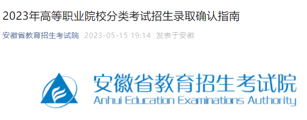 高考頻道從安徽省教育招生考試院了解到,2023年安徽高等職業(yè)院校分類考試招生錄取確認(rèn)指南已公布。具體如下: