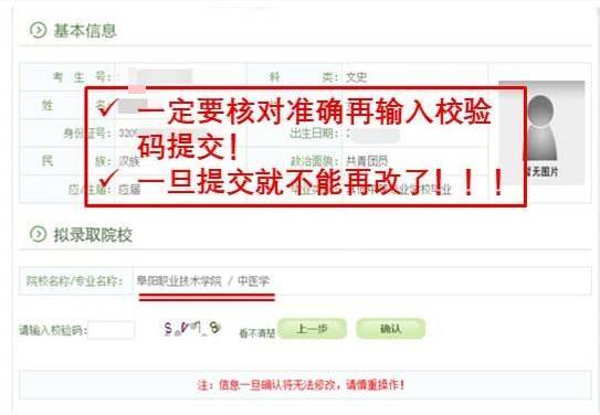 特別提醒:高職院校分類考試(以下簡稱分類考試)錄取確認(rèn)只有在規(guī)定時間內(nèi)(5月16日-17日),在指定網(wǎng)站(gkbm.ahzsks.cn)上操作方為有效。請各位考生一定要妥善保管自己的考生號、身份證號等個人信息,切勿泄露給其他人,更不要委托他人代替自己確認(rèn)。一旦確認(rèn)了錄取院校,是不能修改的?。?!