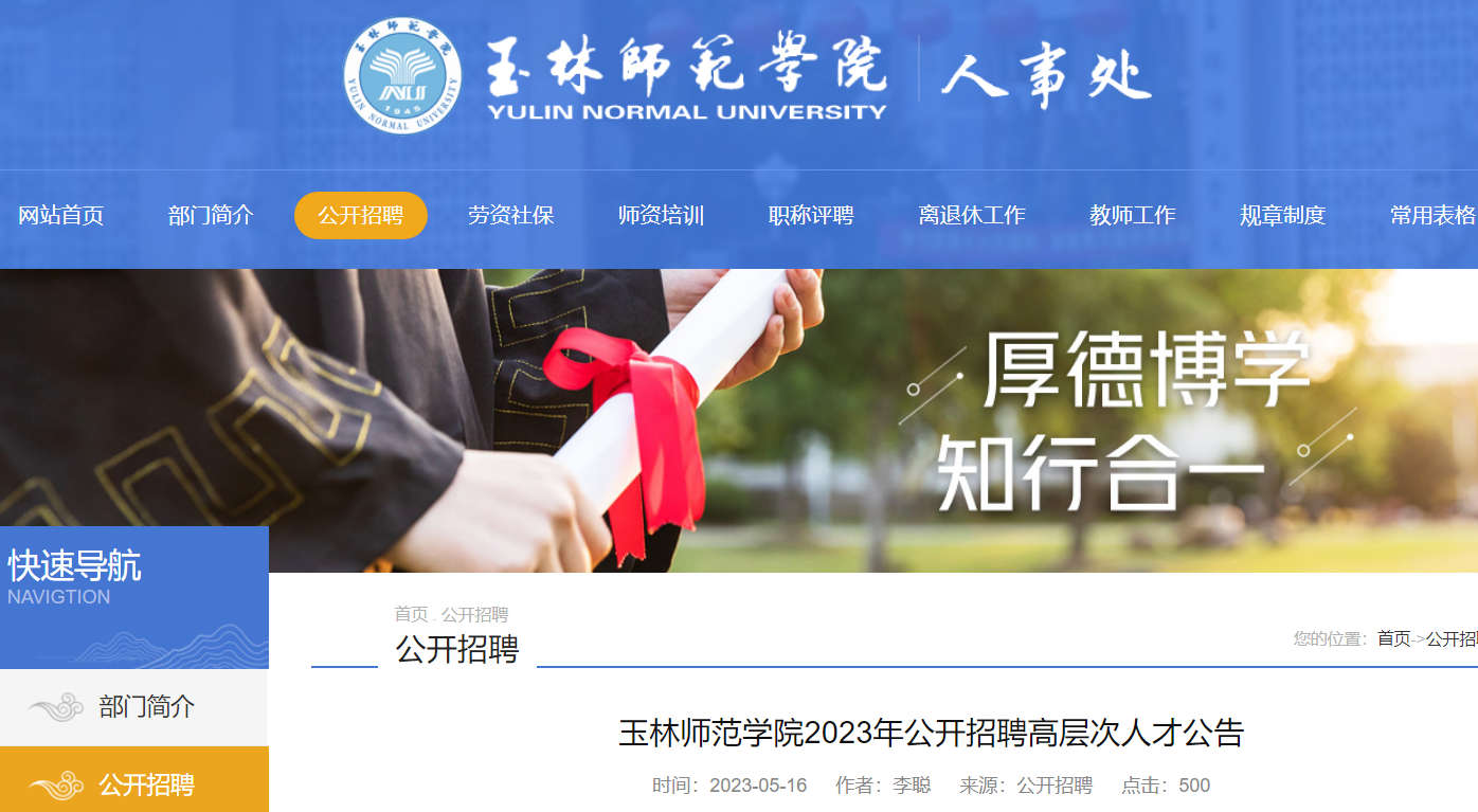 2023年廣西玉林師范學院公開招聘高層次人才公告,報名時間:全年接受報名?,F將招聘公告原文發(fā)布如下: