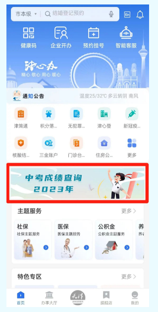 2023年天津中考成績查詢功能將出現(xiàn)在“津心辦”APP首頁顯著位置。