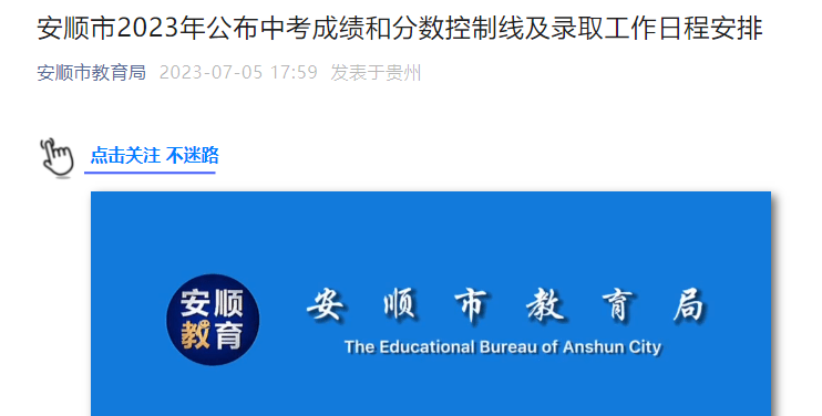 根據(jù)安順市招生委員會辦公室工作安排,安順市2023年公布中考成績、發(fā)布分?jǐn)?shù)控制線時(shí)間以及錄取工作日程安排如下: