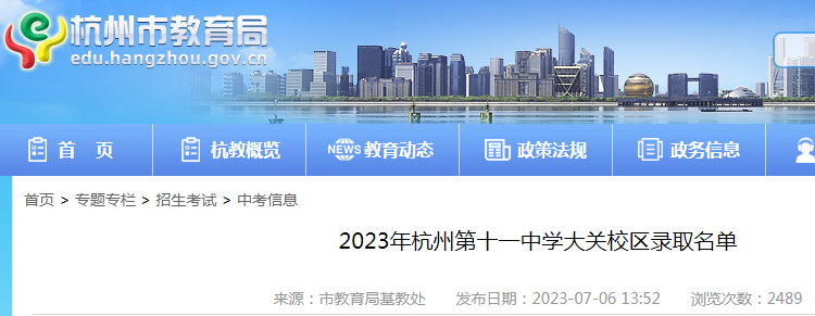 中考頻道從杭州市教育局了解到,2023年浙江杭州第十一中學大關校區(qū)和德勝校區(qū)錄取名單公布??忌凹议L可以登錄杭州市教育局“中考信息”(http://edu.hangzhou.gov.cn/col/col1228921941/index.html)欄目,或者點擊下方鏈接進行查看。