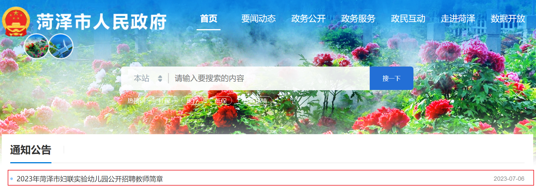 1.菏澤市婦聯(lián)實(shí)驗(yàn)幼兒園公開招聘教師期間的公告事項(xiàng)均在“菏澤市人民政府網(wǎng)”(http://www.heze.gov.cn/)發(fā)布,請(qǐng)應(yīng)聘人員務(wù)必及時(shí)登錄準(zhǔn)確的網(wǎng)站查詢有關(guān)信息,以免影響應(yīng)聘。