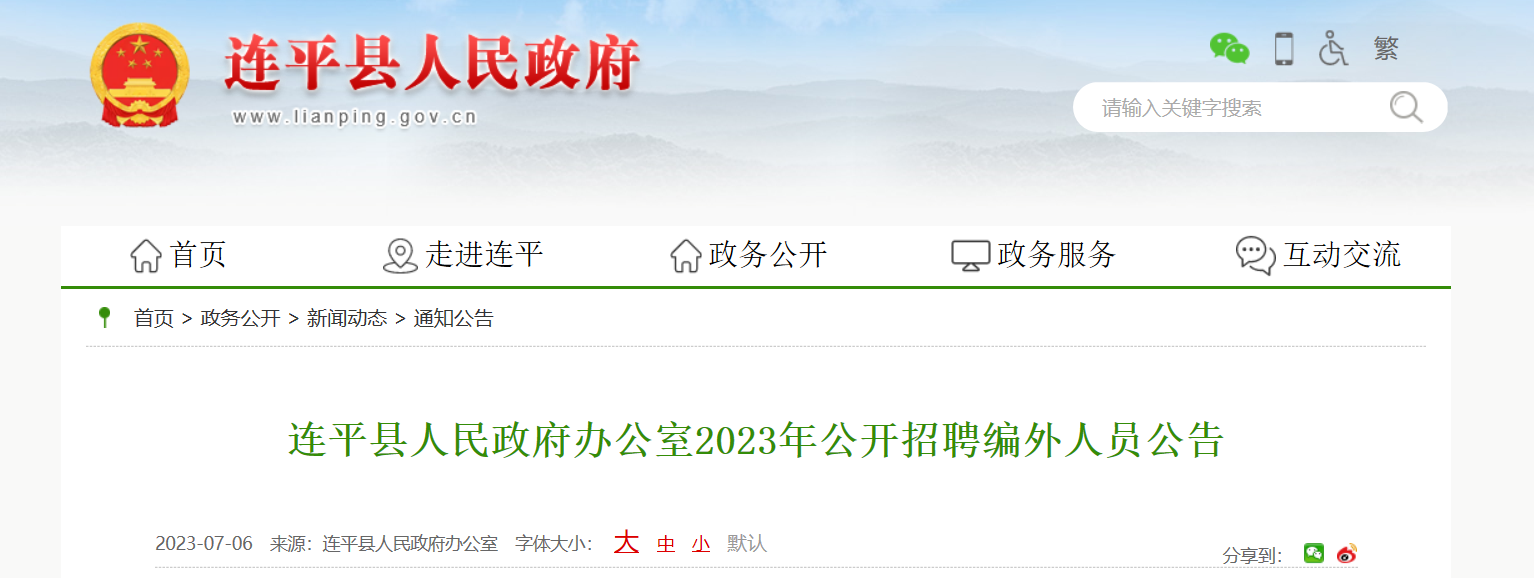2023年廣東省河源市連平縣人民政府辦公室招聘編外人員1人。報名時間:2023年7月11日至2023年7月18日。現(xiàn)將公告原文發(fā)布如下: