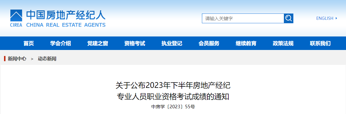 根據(jù)中國房地產(chǎn)經(jīng)紀(jì)人網(wǎng)發(fā)布的《關(guān)于公布2023年下半年房地產(chǎn)經(jīng)紀(jì)專業(yè)人員職業(yè)資格考試成績的通知》中得知,2023下半年山東房地產(chǎn)經(jīng)紀(jì)人考試合格標(biāo)準(zhǔn)現(xiàn)已公布,詳情如下:
