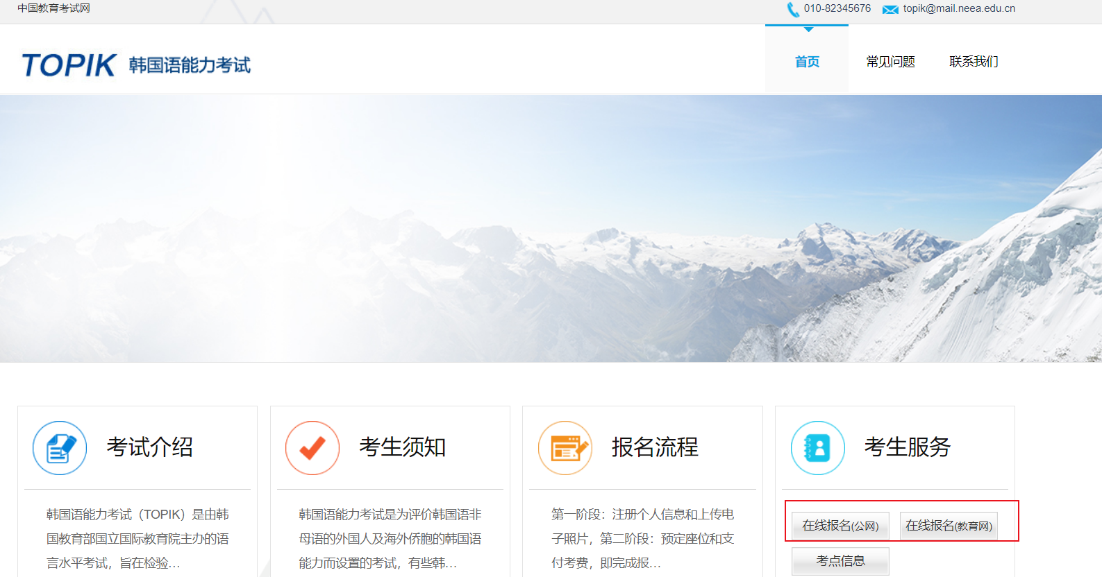 韓國(guó)場(chǎng)2024年韓國(guó)語能力考試可直接登錄韓國(guó)語能力考試網(wǎng)(https://www.topik.go.kr/)進(jìn)行報(bào)名,中國(guó)場(chǎng)2024年韓國(guó)語能力考試可直接登錄中國(guó)教育考試網(wǎng)(https://topik-main.neea.cn/)進(jìn)行報(bào)名。