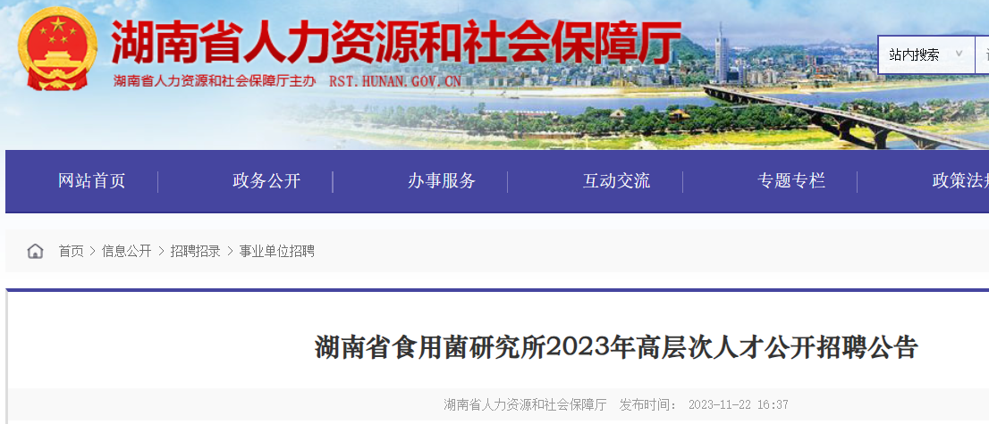 招聘信息通過湖南省人力資源和社會保障廳(http://rst.hunan.gov.cn/)、湖南省供銷合作總社網(wǎng)站、湖南省食用菌研究所網(wǎng)站面向社會公開發(fā)布。