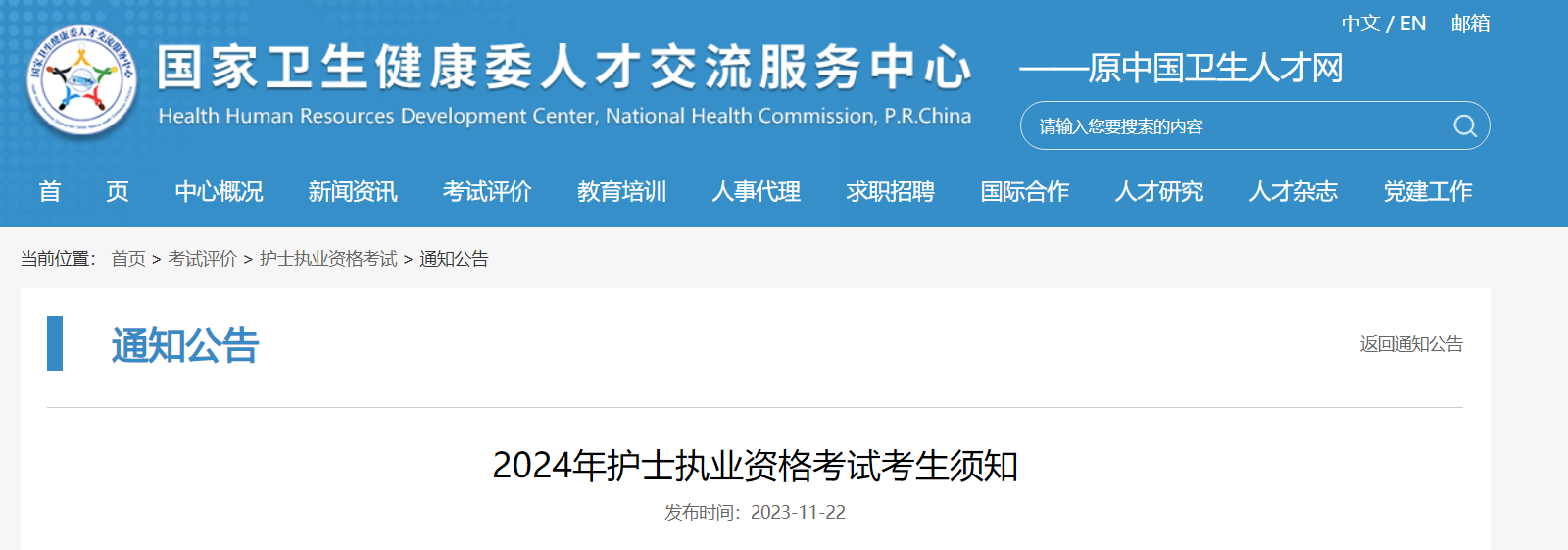從國(guó)家衛(wèi)生健康委人才交流服務(wù)中心發(fā)布的《2024年護(hù)士執(zhí)業(yè)資格考試考生須知》和《2024年護(hù)士執(zhí)業(yè)資格考試有關(guān)問(wèn)題的通知》得知,2024年護(hù)士執(zhí)業(yè)資格考試報(bào)名時(shí)間、條件及入口已公布,2023年12月7-20日進(jìn)行網(wǎng)上預(yù)報(bào)名,具體詳情如下: