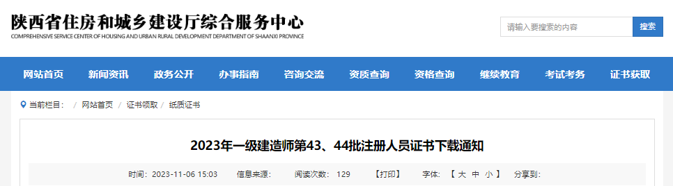 2023年第43、44批陜西一級建造師注冊人員證書下載通知已公布,下面為您詳細介紹一下本次注冊人員證書下載的具體事宜,希望廣大考生及時關注,如有相關疑問,請關注一級建造師考試頻道為您實時做出的更新。