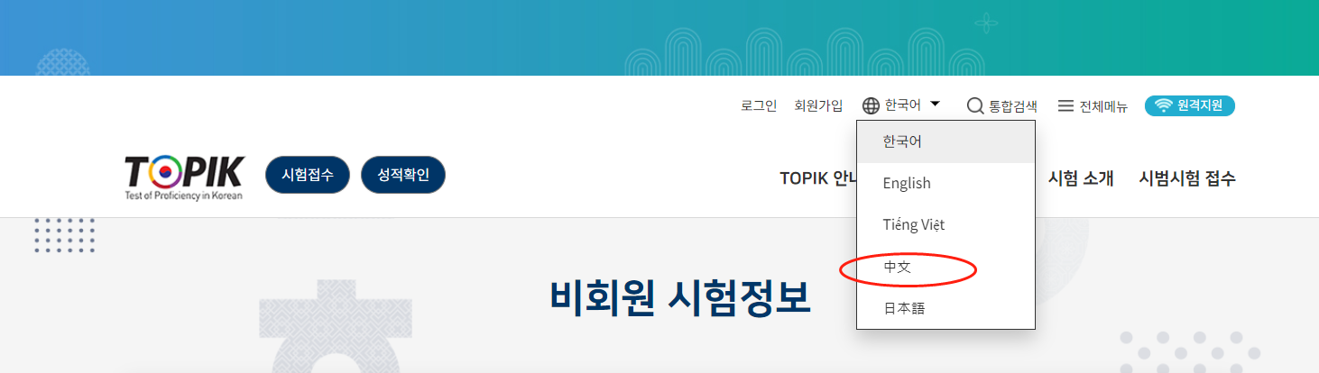 ✅溫馨提示:如果是韓語看不太懂的同學(xué),可以在登錄后切換成中文界面進(jìn)行查詢,點(diǎn)擊下圖的地球圖標(biāo)后的下拉三角,語言欄點(diǎn)擊‘(中文)’