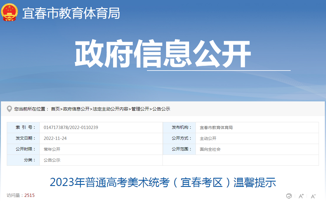 原文標(biāo)題:2023年江西普通高考美術(shù)統(tǒng)考(宜春考區(qū))溫馨提示
