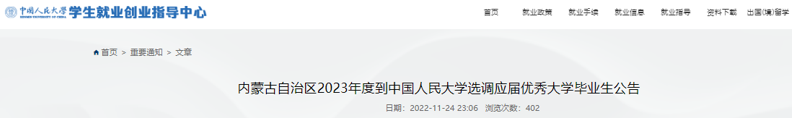 原文標(biāo)題:內(nèi)蒙古自治區(qū)2023年度到中國人民大學(xué)選調(diào)應(yīng)屆優(yōu)秀大學(xué)畢業(yè)生公告