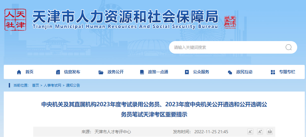2023年天津考區(qū)國考、中央機關公開遴選和公開選調公務員筆試重要提示已公布,為了方便廣大考生的查閱,下面為您詳細介紹一下本次國考和中央機關遴選選調公務員筆試的具體事宜,希望廣大考生及時關注,如有相關疑問,請關注為您實時做出的更新。
