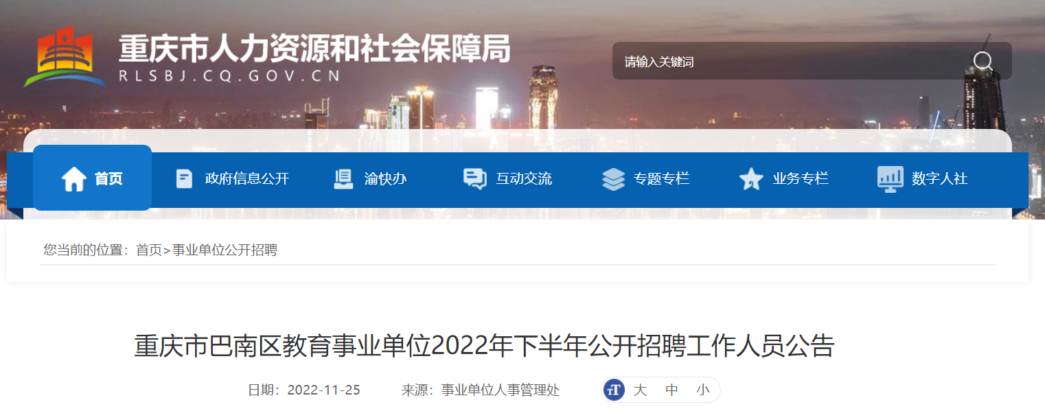 【點(diǎn)擊進(jìn)入:重慶市巴南區(qū)教育事業(yè)單位2022年下半年公開招聘工作人員報(bào)名入口】