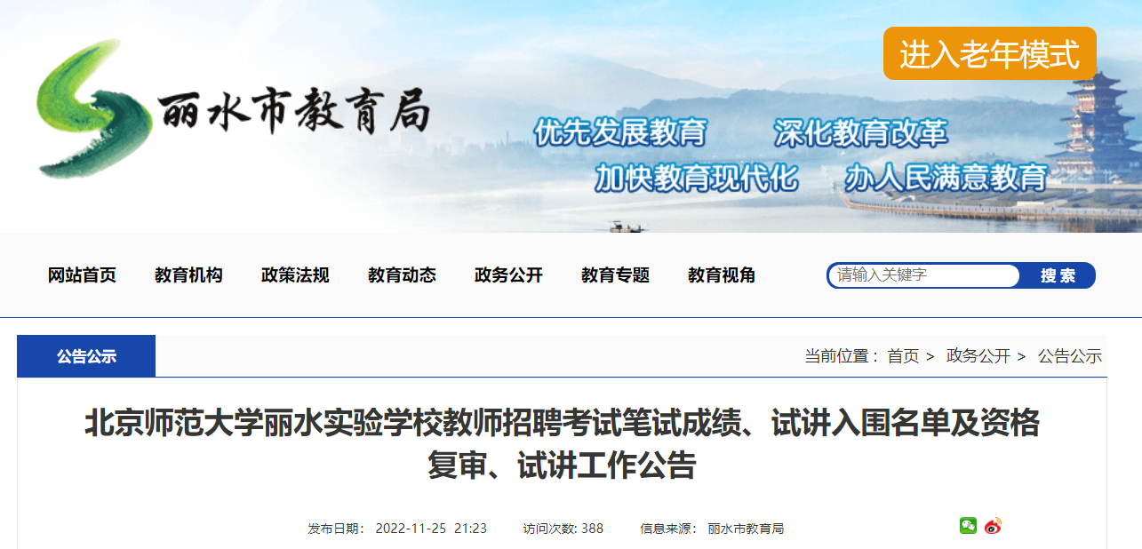 2022北師大麗水實驗學校教師招聘考試筆試成績、試講名單及資格復審、試講公告已發(fā)布,現(xiàn)將原文發(fā)布如下: