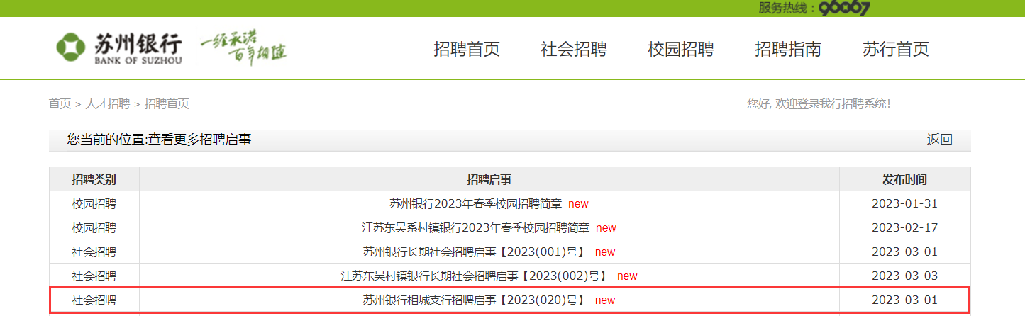 3.在法律法規(guī)允許范圍內,蘇州銀行可根據(jù)報名情況,取消或終止個別崗位的招聘工作;