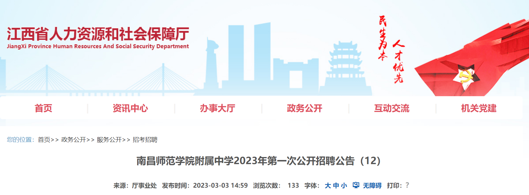 2023年江西南昌師范學(xué)院附屬中學(xué)第公開招聘公告已發(fā)布,報名時間:即日起至3月18日。現(xiàn)將招聘公告原文發(fā)布如下: