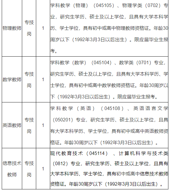 2.以上崗位條件中的學(xué)科專業(yè)按照教育部印發(fā)的《研究生學(xué)科專業(yè)目錄》《專業(yè)學(xué)位授予和人才培養(yǎng)目錄》設(shè)置,專業(yè)名稱后括號中的數(shù)字為學(xué)科專業(yè)代碼;