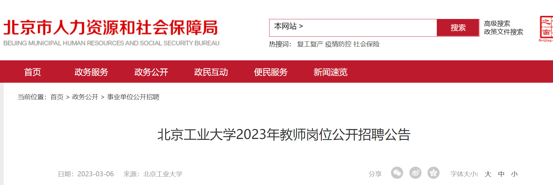 2023年北京工業(yè)大學(xué)教師崗位公開招聘報(bào)名入口