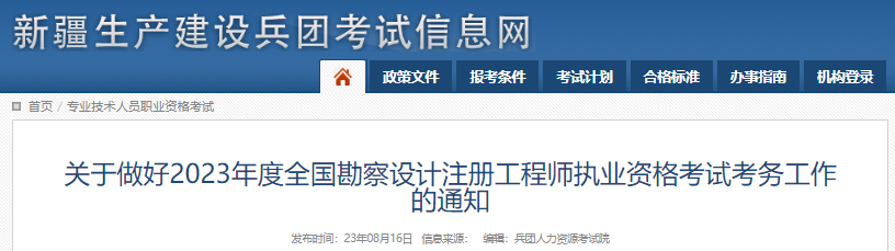 從新疆生產(chǎn)建設(shè)兵團考試信息網(wǎng)獲悉,2023年新疆生產(chǎn)建設(shè)兵團勘察設(shè)計工程師報考工作現(xiàn)已開始,報名時間:8月28日-9月11日,考試時間:11月4日-5日,更多事宜請參考閱讀《考務(wù)通知》,官方公告原文如下: