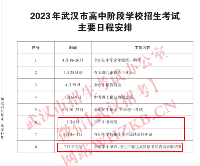 從武漢招考網(wǎng)發(fā)布的《湖北武漢2023年高中階段學(xué)校招生考試工作的通知》得知,2023年湖北武漢中考錄取時(shí)間及政策已公布,7月中下旬進(jìn)行錄取及查詢,具體詳情如下: