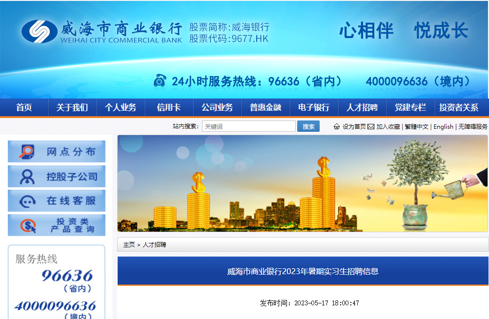 原文標(biāo)題:威海市商業(yè)銀行2023年暑期實習(xí)生招聘信息