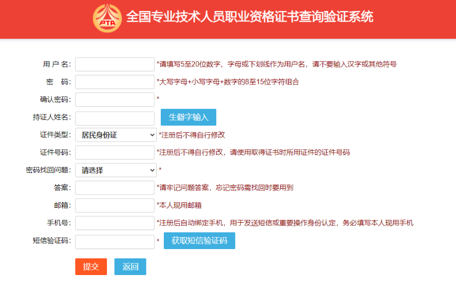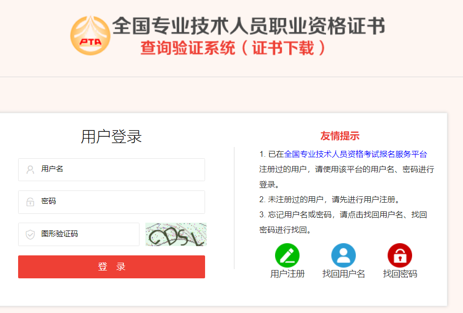 已在中國人事考試網(wǎng)“全國專業(yè)技術人員資格考試報名服務平臺”注冊過的持證人員,請直接使用該平臺的用戶名、密碼進行登錄。