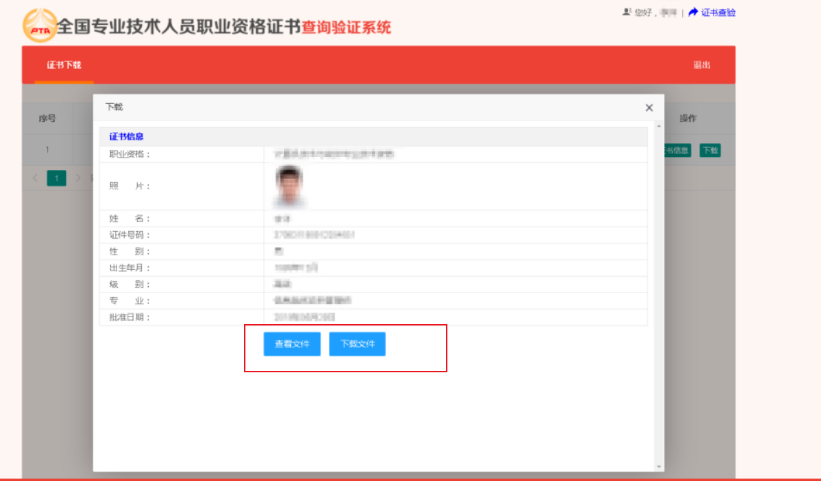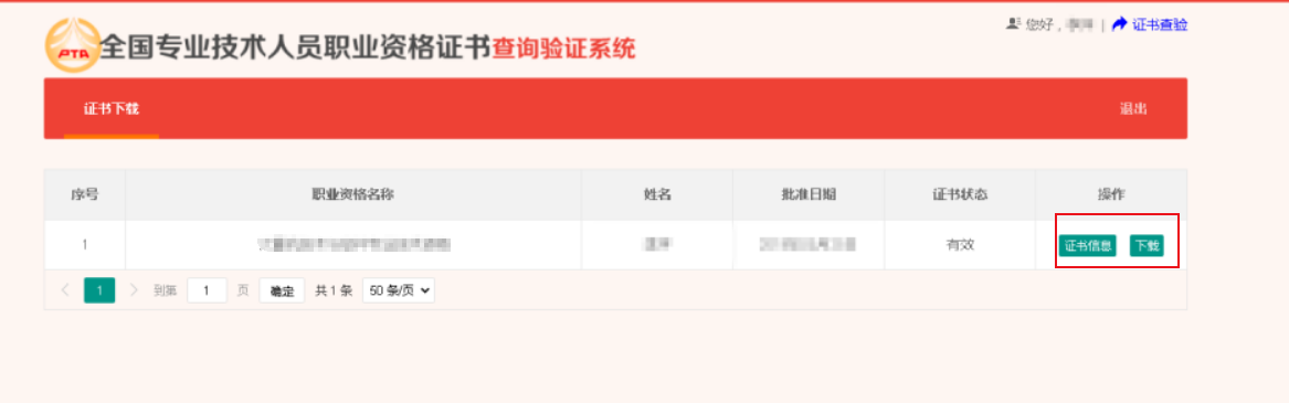 點擊[同意]按鈕后,即可進入證書查看和下載頁面。