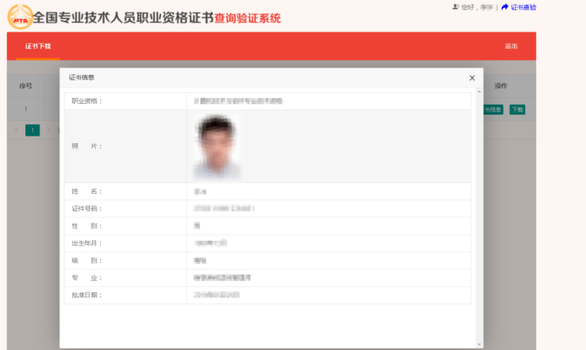 點擊[證書信息]按鈕,可查看該證書對應的信息。